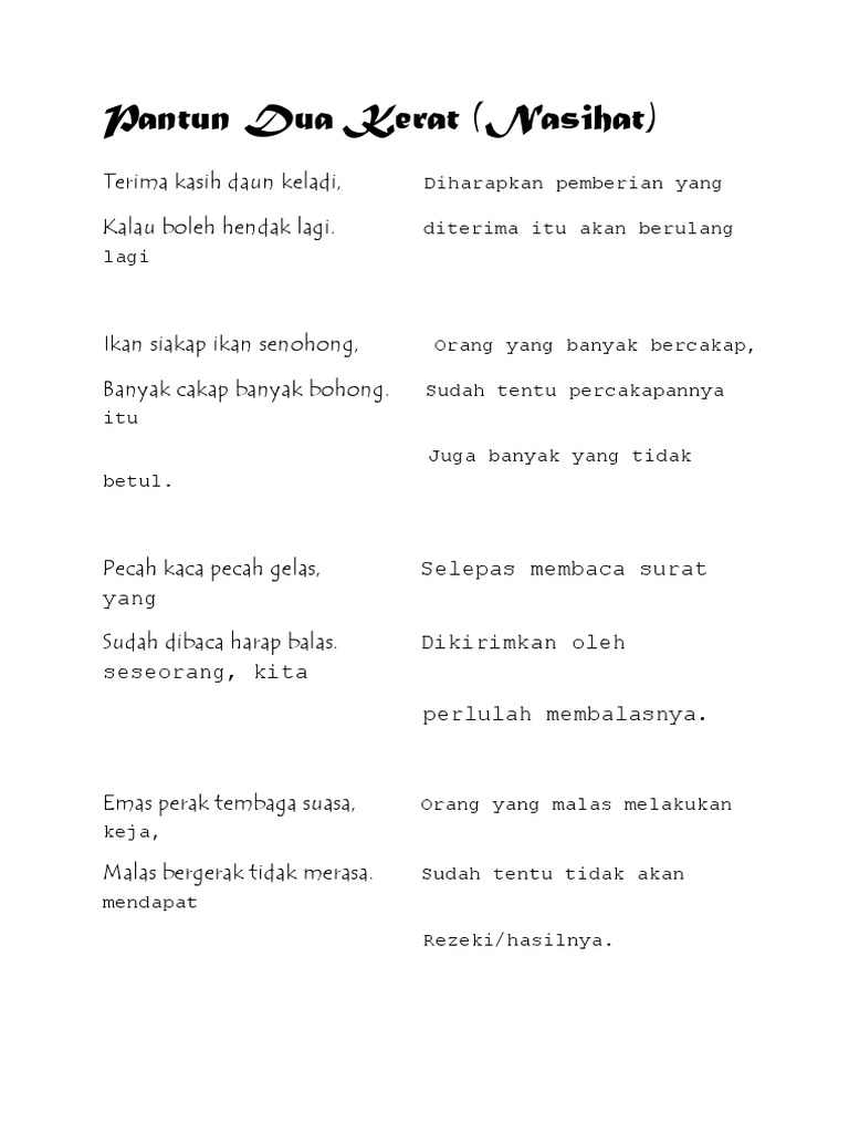 Pantun dua kerat - bentuk terikat. Terima kasihamat membantu. Pantun Kasih Sayang Rangkap Maksud 1 Wajah seseorang yang kelihatan ber.